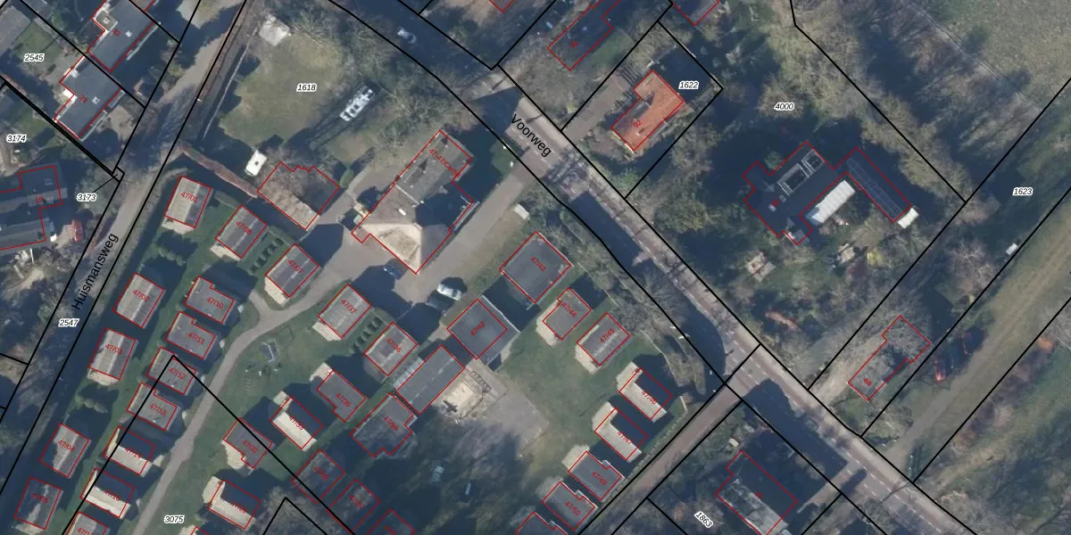Het perceel waarop Voorweg 47-43 staat heeft een oppervlakte van 8440 m². Dit is een zeer groot perceel. De perceeloppervlakte wordt geregistreerd door het Kadaster. Gedetailleerde informatie over de maten van dit perceel kunt u vinden in het rapport Kadastrale kaart met maatvoering van Voorweg 47-43.