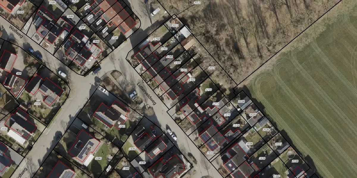 Lutterveldweg 12 is gelegen op kadastraal perceel HDB01W1702. Deze kadastrale aanduiding is uniek en wordt gebruikt door het Kadaster om eigendomsrechten en andere zakelijke rechten vast te leggen. Het perceel maakt onderdeel uit van de kadastrale gemeente Ambt-Hardenberg.