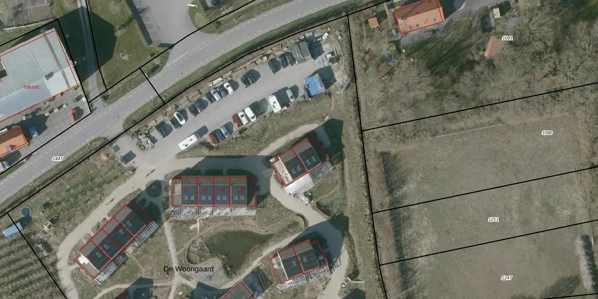 De Woongaard 1 is gelegen op kadastraal perceel VRE00G2520. Deze kadastrale aanduiding is uniek en wordt gebruikt door het Kadaster om eigendomsrechten en andere zakelijke rechten vast te leggen. Het perceel maakt onderdeel uit van de kadastrale gemeente Veere.