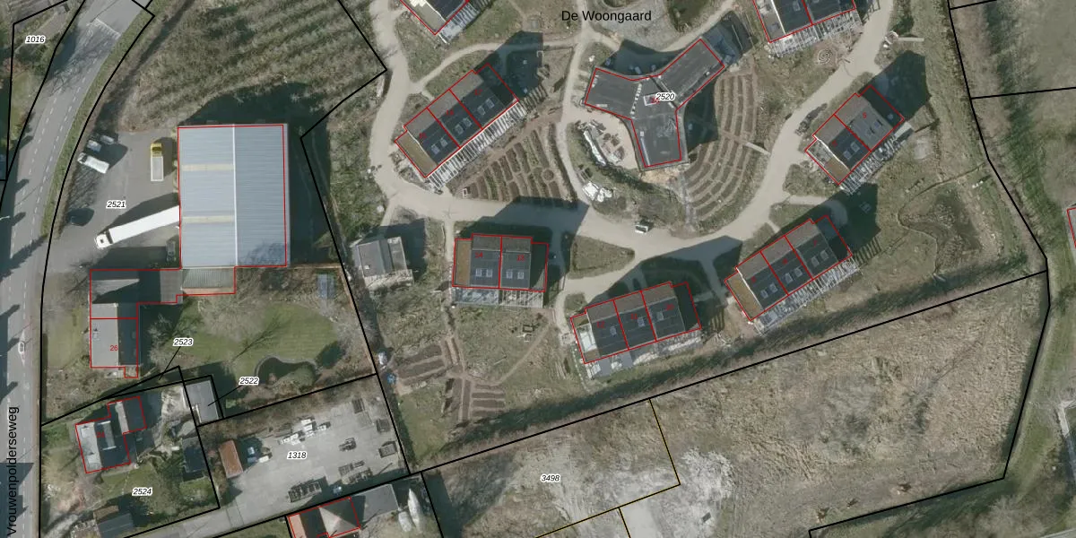 De Woongaard 13 is gelegen op kadastraal perceel VRE00G2520. Deze kadastrale aanduiding is uniek en wordt gebruikt door het Kadaster om eigendomsrechten en andere zakelijke rechten vast te leggen. Het perceel maakt onderdeel uit van de kadastrale gemeente Veere.