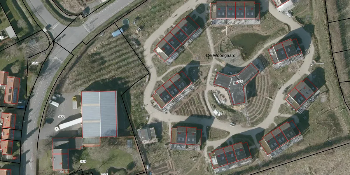 De Woongaard 16 is gelegen op kadastraal perceel VRE00G2520. Deze kadastrale aanduiding is uniek en wordt gebruikt door het Kadaster om eigendomsrechten en andere zakelijke rechten vast te leggen. Het perceel maakt onderdeel uit van de kadastrale gemeente Veere.