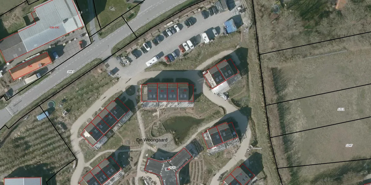 Het perceel waarop De Woongaard 25 staat heeft een oppervlakte van 1,5 ha. Dit is een zeer groot perceel. De perceeloppervlakte wordt geregistreerd door het Kadaster. Gedetailleerde informatie over de maten van dit perceel kunt u vinden in het rapport Kadastrale kaart met maatvoering van De Woongaard 25.