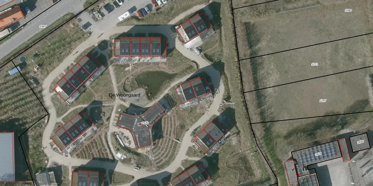 De Woongaard 4 is gelegen op kadastraal perceel VRE00G2520. Deze kadastrale aanduiding is uniek en wordt gebruikt door het Kadaster om eigendomsrechten en andere zakelijke rechten vast te leggen. Het perceel maakt onderdeel uit van de kadastrale gemeente Veere.