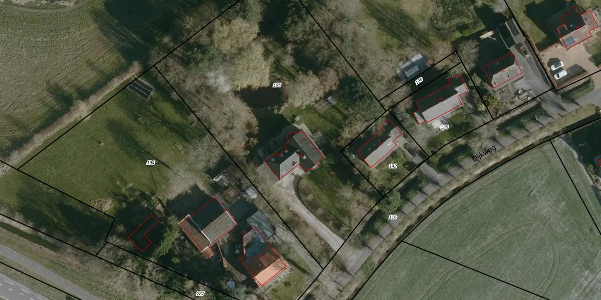 Het perceel waarop Dijkweg 28 staat heeft een oppervlakte van 3770 m². Dit is een zeer groot perceel. De perceeloppervlakte wordt geregistreerd door het Kadaster. Gedetailleerde informatie over de maten van dit perceel kunt u vinden in het rapport Kadastrale kaart met maatvoering van Dijkweg 28.