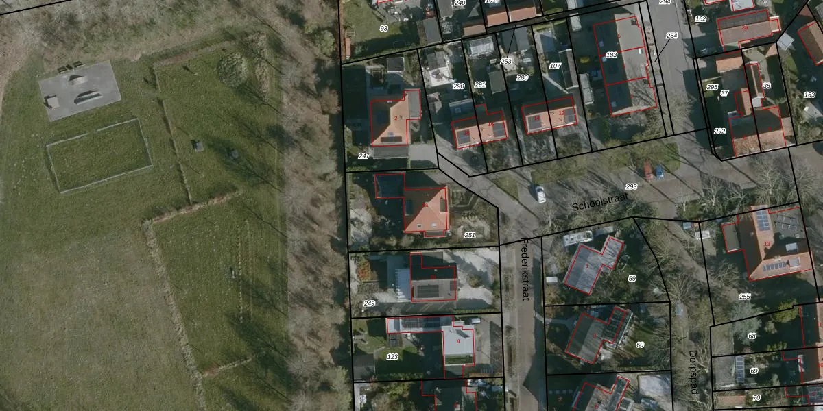 Het perceel waarop Frederikstraat 2-a staat heeft een oppervlakte van 639 m². Dit is een groot perceel. De perceeloppervlakte wordt geregistreerd door het Kadaster. Gedetailleerde informatie over de maten van dit perceel kunt u vinden in het rapport Kadastrale kaart met maatvoering van Frederikstraat 2-a.