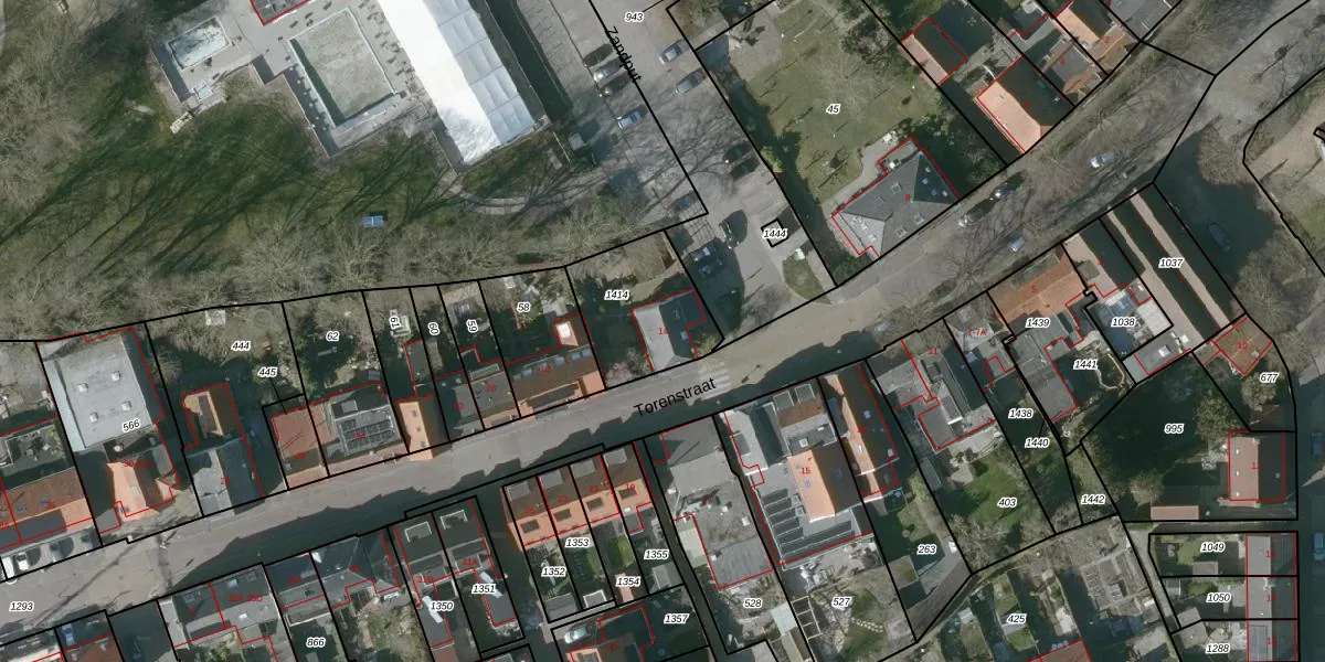 Het perceel waarop Torenstraat 14 staat heeft een oppervlakte van 351 m². Dit is een groot perceel. De perceeloppervlakte wordt geregistreerd door het Kadaster. Gedetailleerde informatie over de maten van dit perceel kunt u vinden in het rapport Kadastrale kaart met maatvoering van Torenstraat 14.