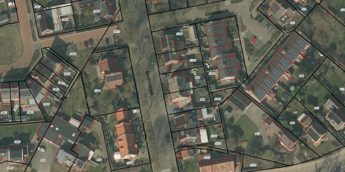 Het perceel waarop Beatrixstraat 19 staat heeft een oppervlakte van 308 m². Dit is een groot perceel. De perceeloppervlakte wordt geregistreerd door het Kadaster. Gedetailleerde informatie over de maten van dit perceel kunt u vinden in het rapport Kadastrale kaart met maatvoering van Beatrixstraat 19.