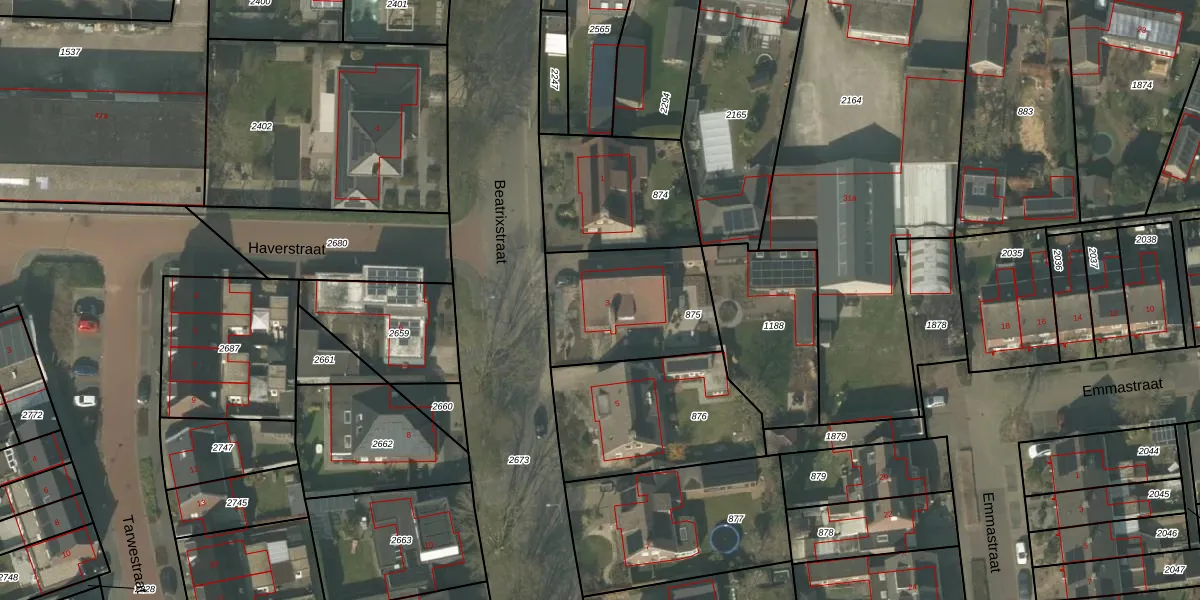 Het perceel waarop Beatrixstraat 3 staat heeft een oppervlakte van 511 m². Dit is een groot perceel. De perceeloppervlakte wordt geregistreerd door het Kadaster. Gedetailleerde informatie over de maten van dit perceel kunt u vinden in het rapport Kadastrale kaart met maatvoering van Beatrixstraat 3.