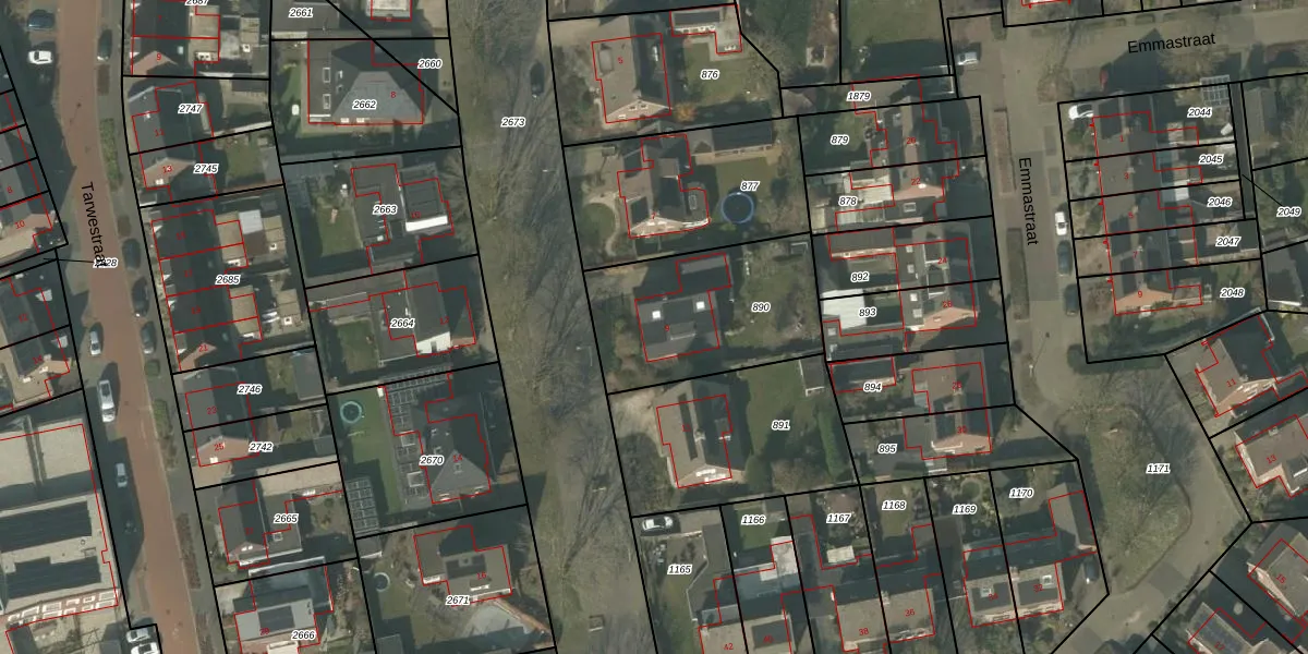 Gebruik de zoekbalk of klik op een perceel voor informatie over de adressen binnen dit perceel.