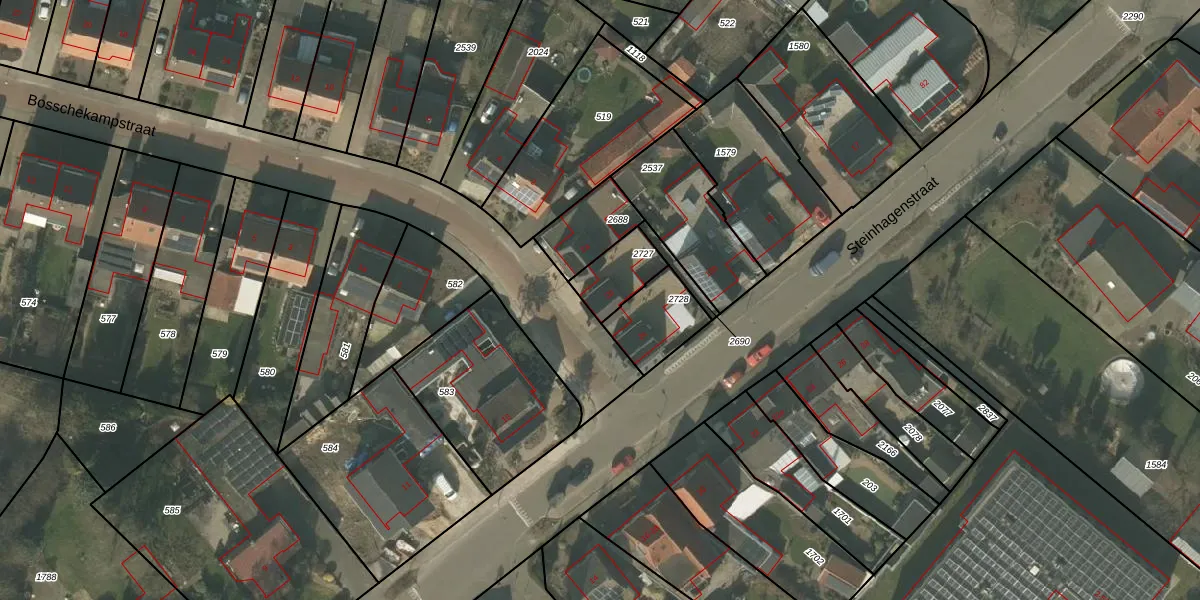 Gebruik de zoekbalk of klik op een perceel voor informatie over de adressen binnen dit perceel.
