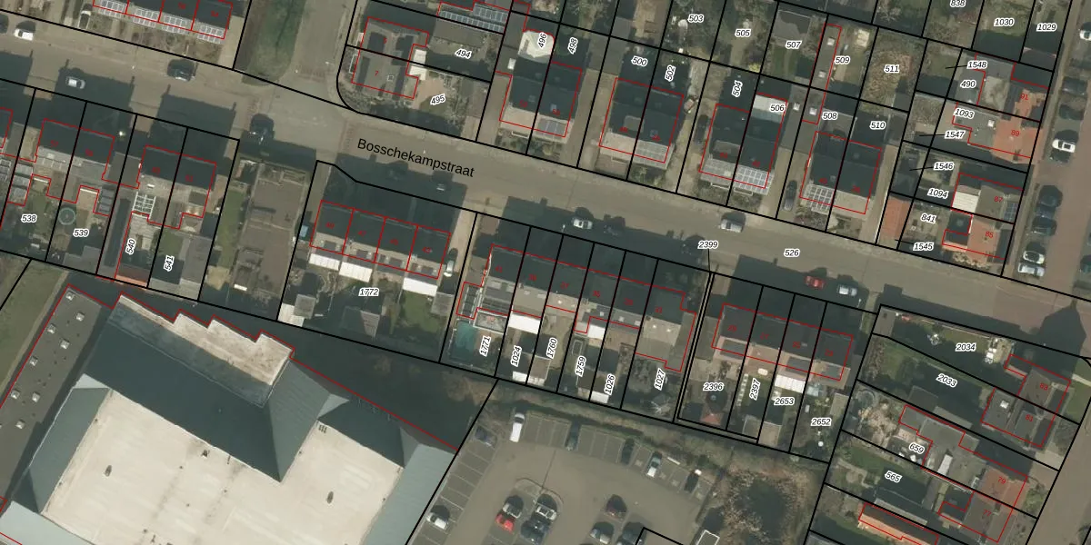 Het perceel waarop Bosschekampstraat 39 staat heeft een oppervlakte van 174 m². Dit is een middelgroot perceel. De perceeloppervlakte wordt geregistreerd door het Kadaster. Gedetailleerde informatie over de maten van dit perceel kunt u vinden in het rapport Kadastrale kaart met maatvoering van Bosschekampstraat 39.