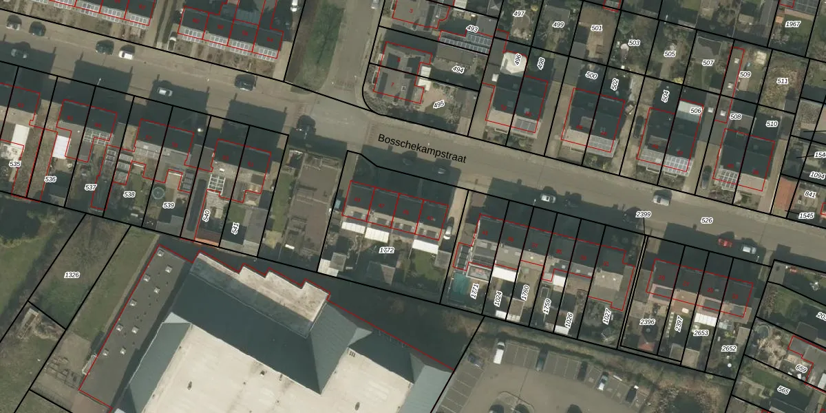 Het perceel waarop Bosschekampstraat 45 staat heeft een oppervlakte van 897 m². Dit is een groot perceel. De perceeloppervlakte wordt geregistreerd door het Kadaster. Gedetailleerde informatie over de maten van dit perceel kunt u vinden in het rapport Kadastrale kaart met maatvoering van Bosschekampstraat 45.