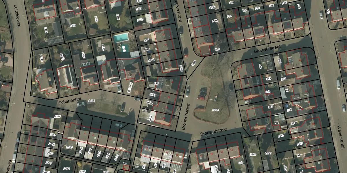 Brouwerstraat 14 is gelegen op kadastraal perceel SVN01L953. Deze kadastrale aanduiding is uniek en wordt gebruikt door het Kadaster om eigendomsrechten en andere zakelijke rechten vast te leggen. Het perceel maakt onderdeel uit van de kadastrale gemeente Sevenum.
