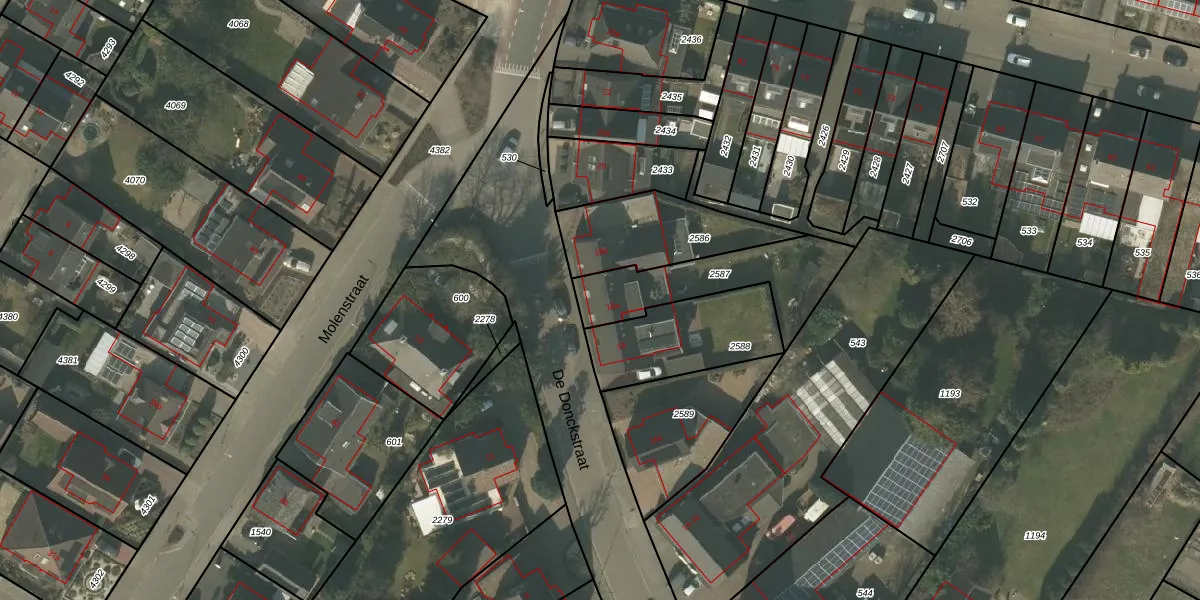 Gebruik de zoekbalk of klik op een perceel voor informatie over de adressen binnen dit perceel.