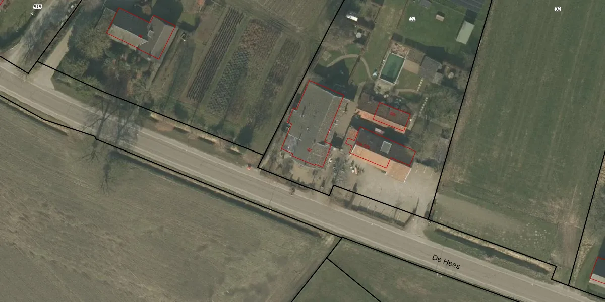 De Hees 32 is gelegen op kadastraal perceel SVN01R31. Deze kadastrale aanduiding is uniek en wordt gebruikt door het Kadaster om eigendomsrechten en andere zakelijke rechten vast te leggen. Het perceel maakt onderdeel uit van de kadastrale gemeente Sevenum.