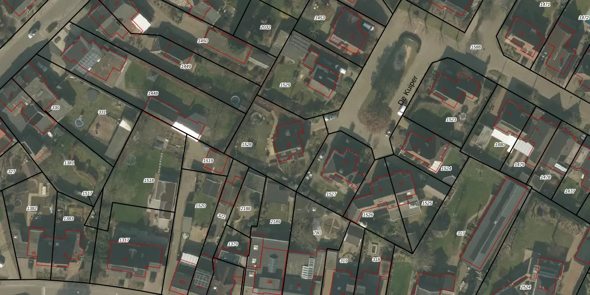 Het perceel waarop De Kuiper 25 staat heeft een oppervlakte van 654 m². Dit is een groot perceel. De perceeloppervlakte wordt geregistreerd door het Kadaster. Gedetailleerde informatie over de maten van dit perceel kunt u vinden in het rapport Kadastrale kaart met maatvoering van De Kuiper 25.