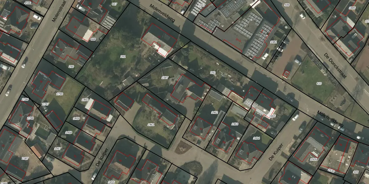 Het perceel waarop De Kuiper 65 staat heeft een oppervlakte van 685 m². Dit is een groot perceel. De perceeloppervlakte wordt geregistreerd door het Kadaster. Gedetailleerde informatie over de maten van dit perceel kunt u vinden in het rapport Kadastrale kaart met maatvoering van De Kuiper 65.