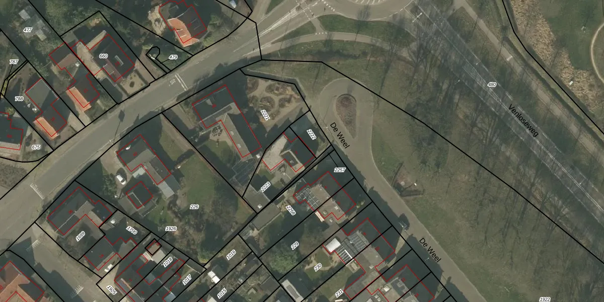 De Weel 2 is gelegen op kadastraal perceel SVN01L2223. Deze kadastrale aanduiding is uniek en wordt gebruikt door het Kadaster om eigendomsrechten en andere zakelijke rechten vast te leggen. Het perceel maakt onderdeel uit van de kadastrale gemeente Sevenum.
