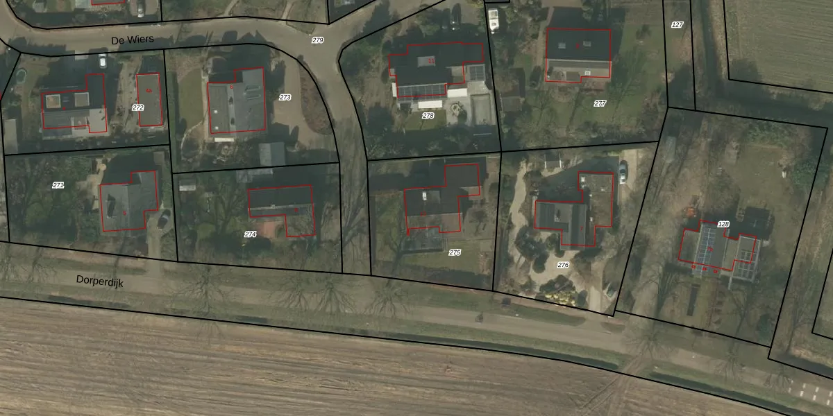 Het perceel waarop De Wiers 13 staat heeft een oppervlakte van 940 m². Dit is een groot perceel. De perceeloppervlakte wordt geregistreerd door het Kadaster. Gedetailleerde informatie over de maten van dit perceel kunt u vinden in het rapport Kadastrale kaart met maatvoering van De Wiers 13.