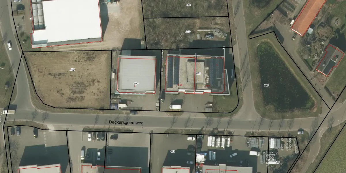 Deckersgoedtweg 5 is gelegen op kadastraal perceel SVN01S493. Deze kadastrale aanduiding is uniek en wordt gebruikt door het Kadaster om eigendomsrechten en andere zakelijke rechten vast te leggen. Het perceel maakt onderdeel uit van de kadastrale gemeente Sevenum.