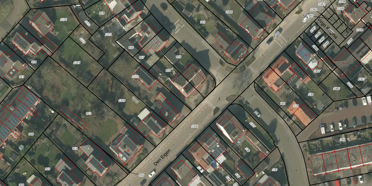 Het perceel waarop Den Eigen 30 staat heeft een oppervlakte van 343 m². Dit is een groot perceel. De perceeloppervlakte wordt geregistreerd door het Kadaster. Gedetailleerde informatie over de maten van dit perceel kunt u vinden in het rapport Kadastrale kaart met maatvoering van Den Eigen 30.