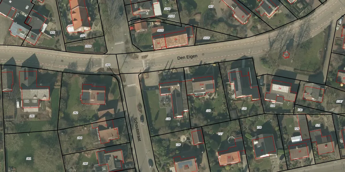 Het perceel waarop Den Eigen 33 staat heeft een oppervlakte van 925 m². Dit is een groot perceel. De perceeloppervlakte wordt geregistreerd door het Kadaster. Gedetailleerde informatie over de maten van dit perceel kunt u vinden in het rapport Kadastrale kaart met maatvoering van Den Eigen 33.