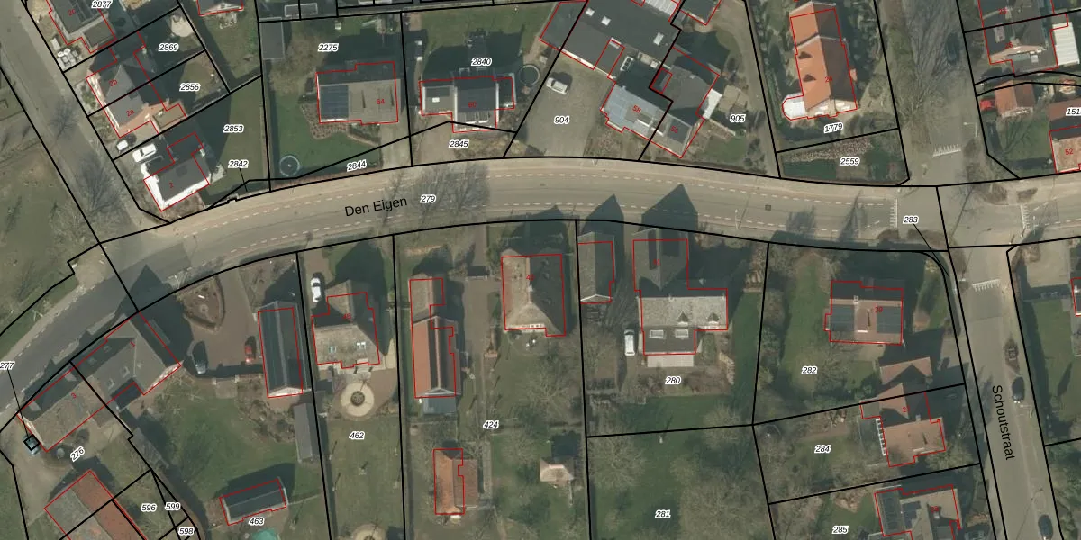 Gebruik de zoekbalk of klik op een perceel voor informatie over de adressen binnen dit perceel.