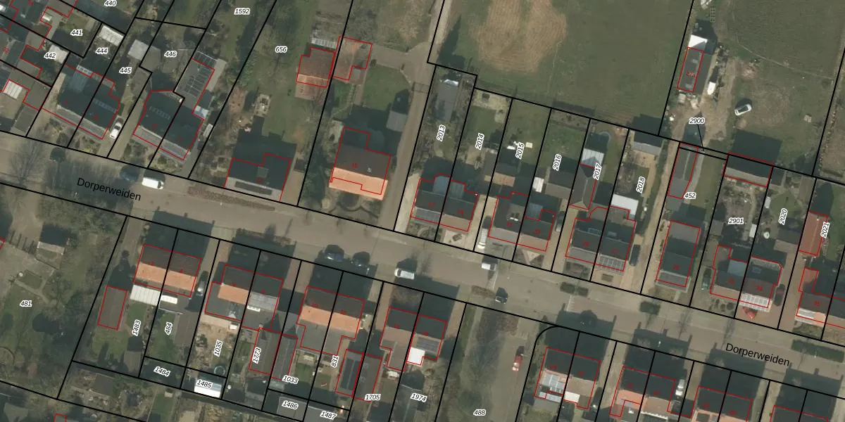 Het perceel waarop Dorperweiden 17 staat heeft een oppervlakte van 407 m². Dit is een groot perceel. De perceeloppervlakte wordt geregistreerd door het Kadaster. Gedetailleerde informatie over de maten van dit perceel kunt u vinden in het rapport Kadastrale kaart met maatvoering van Dorperweiden 17.