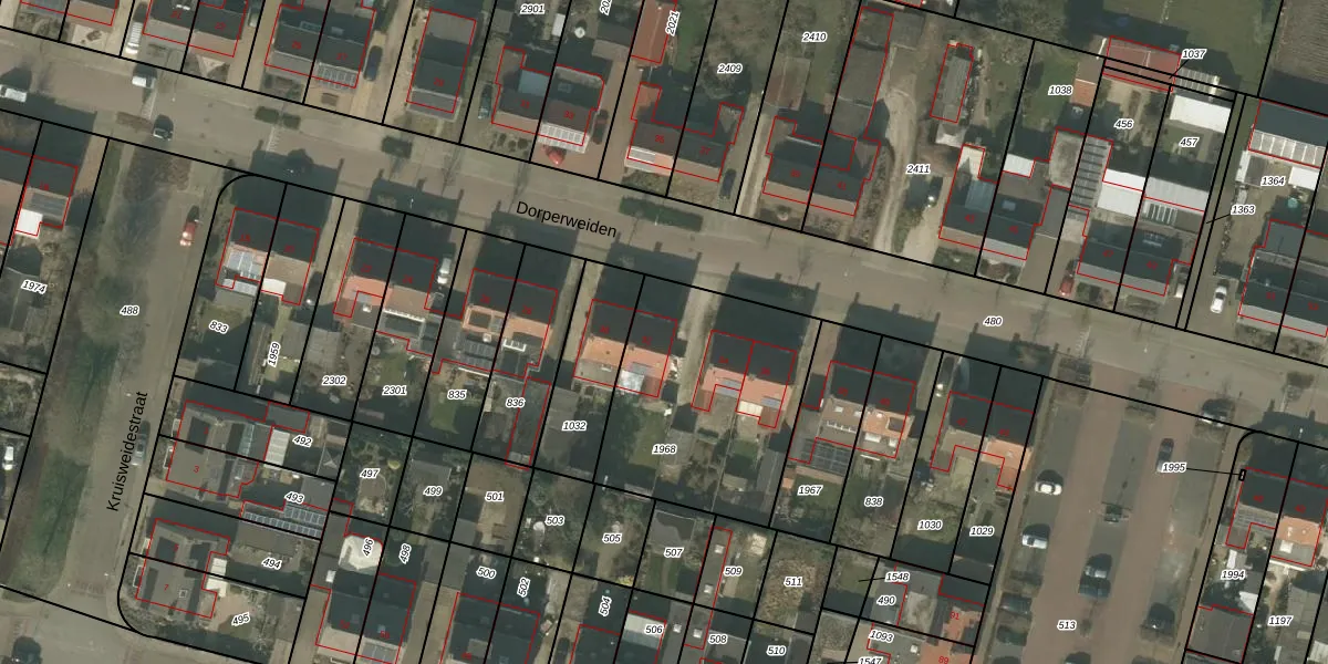 Het perceel waarop Dorperweiden 32 staat heeft een oppervlakte van 905 m². Dit is een groot perceel. De perceeloppervlakte wordt geregistreerd door het Kadaster. Gedetailleerde informatie over de maten van dit perceel kunt u vinden in het rapport Kadastrale kaart met maatvoering van Dorperweiden 32.