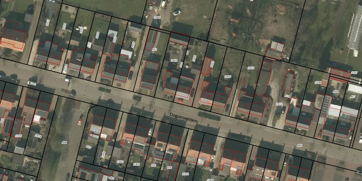 Het perceel waarop Dorperweiden 33 staat heeft een oppervlakte van 395 m². Dit is een groot perceel. De perceeloppervlakte wordt geregistreerd door het Kadaster. Gedetailleerde informatie over de maten van dit perceel kunt u vinden in het rapport Kadastrale kaart met maatvoering van Dorperweiden 33.