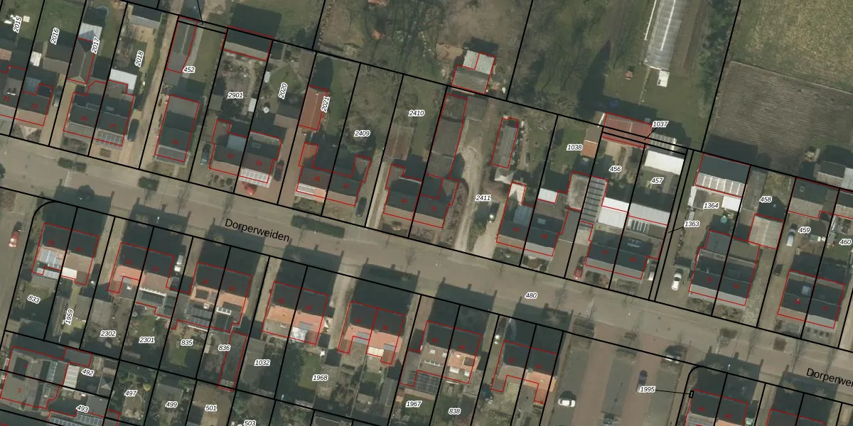 Het perceel waarop Dorperweiden 41 staat heeft een oppervlakte van 939 m². Dit is een groot perceel. De perceeloppervlakte wordt geregistreerd door het Kadaster. Gedetailleerde informatie over de maten van dit perceel kunt u vinden in het rapport Kadastrale kaart met maatvoering van Dorperweiden 41.