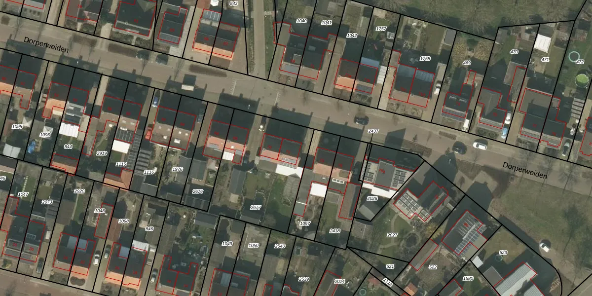 Het perceel waarop Dorperweiden 72 staat heeft een oppervlakte van 1657 m². Dit is een zeer groot perceel. De perceeloppervlakte wordt geregistreerd door het Kadaster. Gedetailleerde informatie over de maten van dit perceel kunt u vinden in het rapport Kadastrale kaart met maatvoering van Dorperweiden 72.