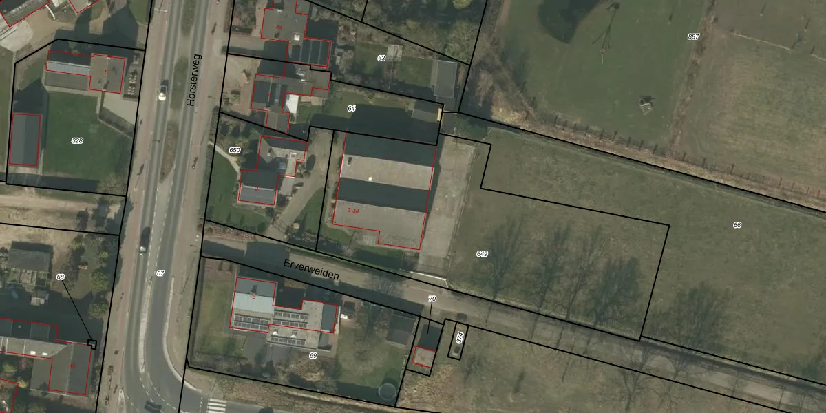 Erverweiden 3-b is gelegen op kadastraal perceel SVN01S649. Deze kadastrale aanduiding is uniek en wordt gebruikt door het Kadaster om eigendomsrechten en andere zakelijke rechten vast te leggen. Het perceel maakt onderdeel uit van de kadastrale gemeente Sevenum.