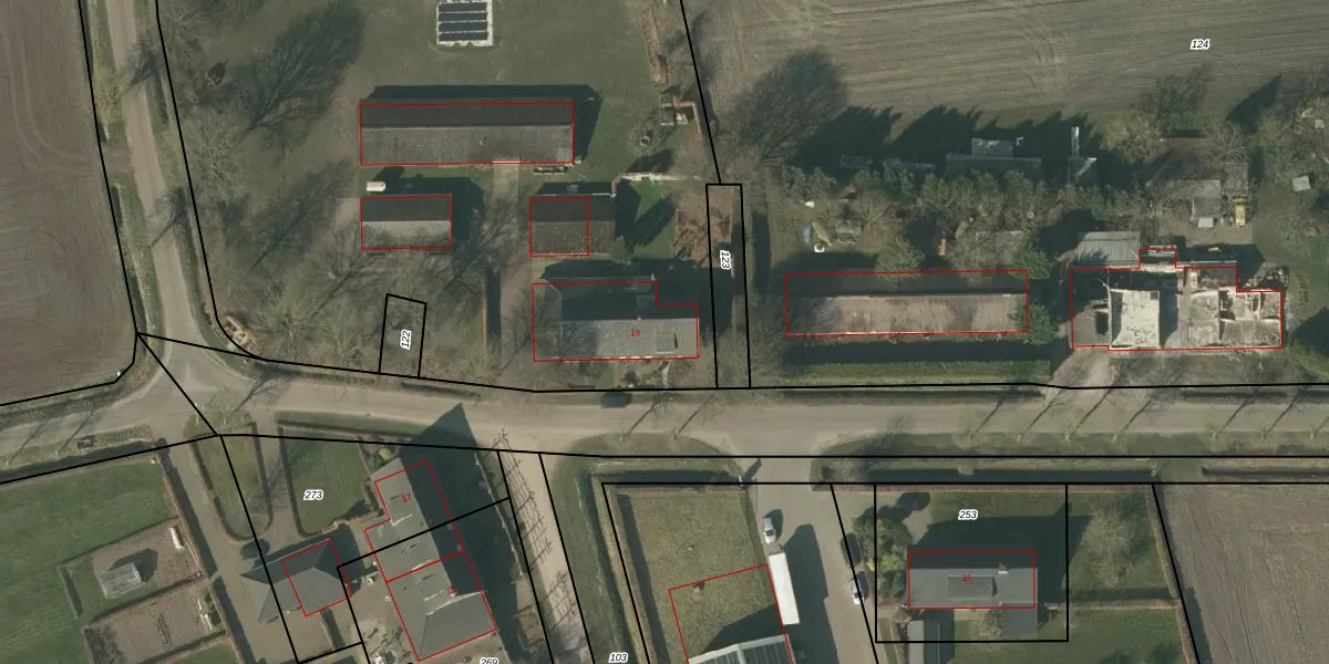 Het perceel waarop Gelderdijk 16 staat heeft een oppervlakte van 6037 m². Dit is een zeer groot perceel. De perceeloppervlakte wordt geregistreerd door het Kadaster. Gedetailleerde informatie over de maten van dit perceel kunt u vinden in het rapport Kadastrale kaart met maatvoering van Gelderdijk 16.