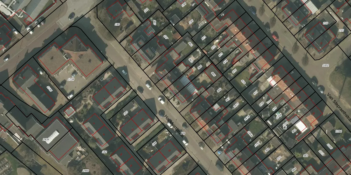 Het perceel waarop Hackfoirtstraat 9 staat heeft een oppervlakte van 198 m². Dit is een middelgroot perceel. De perceeloppervlakte wordt geregistreerd door het Kadaster. Gedetailleerde informatie over de maten van dit perceel kunt u vinden in het rapport Kadastrale kaart met maatvoering van Hackfoirtstraat 9.