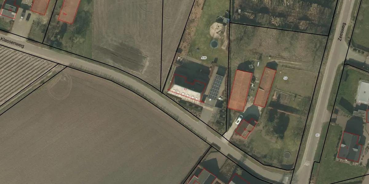 Klassenweg 57 is gelegen op kadastraal perceel SVN01U448. Deze kadastrale aanduiding is uniek en wordt gebruikt door het Kadaster om eigendomsrechten en andere zakelijke rechten vast te leggen. Het perceel maakt onderdeel uit van de kadastrale gemeente Sevenum.