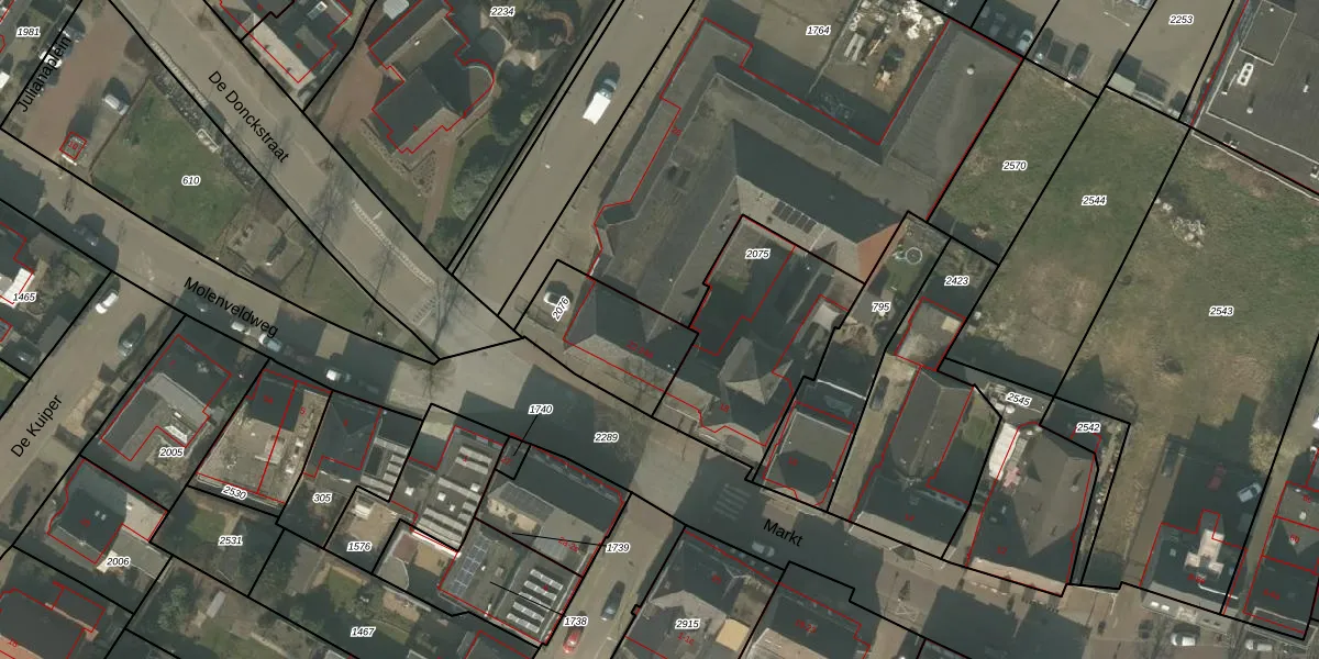 Het perceel waarop Markt 24-d staat heeft een oppervlakte van 339 m². Dit is een groot perceel. De perceeloppervlakte wordt geregistreerd door het Kadaster. Gedetailleerde informatie over de maten van dit perceel kunt u vinden in het rapport Kadastrale kaart met maatvoering van Markt 24-d.
