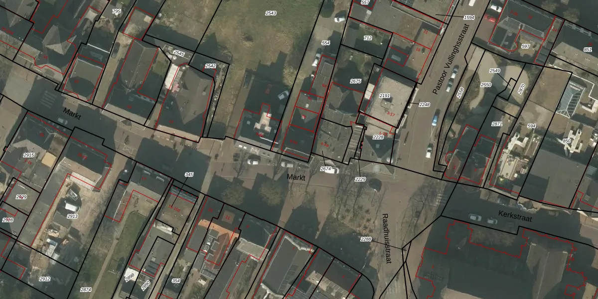 Het perceel waarop Markt 6-a staat heeft een oppervlakte van 670 m². Dit is een groot perceel. De perceeloppervlakte wordt geregistreerd door het Kadaster. Gedetailleerde informatie over de maten van dit perceel kunt u vinden in het rapport Kadastrale kaart met maatvoering van Markt 6-a.