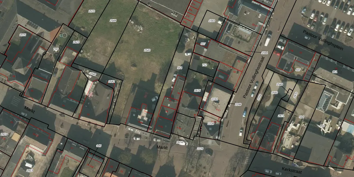 Het perceel waarop Markt 6-d staat heeft een oppervlakte van 670 m². Dit is een groot perceel. De perceeloppervlakte wordt geregistreerd door het Kadaster. Gedetailleerde informatie over de maten van dit perceel kunt u vinden in het rapport Kadastrale kaart met maatvoering van Markt 6-d.