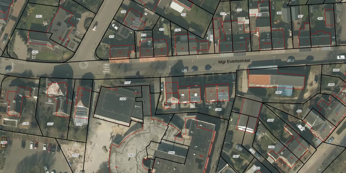 Mgr Evertsstraat 9 is gelegen op kadastraal perceel SVN01L1368. Deze kadastrale aanduiding is uniek en wordt gebruikt door het Kadaster om eigendomsrechten en andere zakelijke rechten vast te leggen. Het perceel maakt onderdeel uit van de kadastrale gemeente Sevenum.