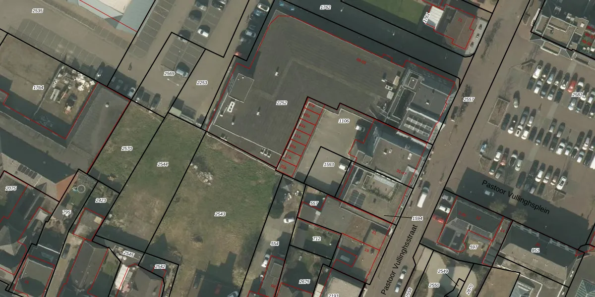 Het perceel waarop Pastoor Vullinghsstraat 39-a staat heeft een oppervlakte van 853 m². Dit is een groot perceel. De perceeloppervlakte wordt geregistreerd door het Kadaster. Gedetailleerde informatie over de maten van dit perceel kunt u vinden in het rapport Kadastrale kaart met maatvoering van Pastoor Vullinghsstraat 39-a.