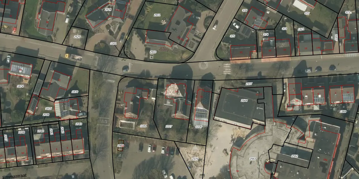Gebruik de zoekbalk of klik op een perceel voor informatie over de adressen binnen dit perceel.