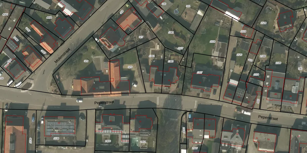 Gebruik de zoekbalk of klik op een perceel voor informatie over de adressen binnen dit perceel.