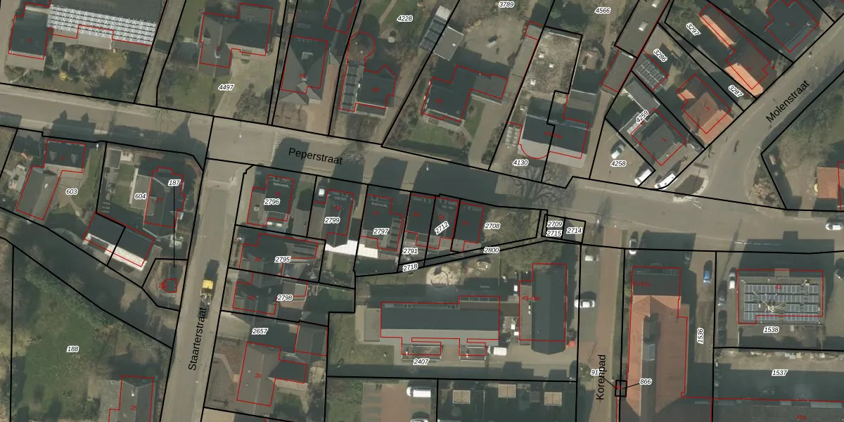 Peperstraat 55 is gelegen op kadastraal perceel SVN01L2791. Deze kadastrale aanduiding is uniek en wordt gebruikt door het Kadaster om eigendomsrechten en andere zakelijke rechten vast te leggen. Het perceel maakt onderdeel uit van de kadastrale gemeente Sevenum.