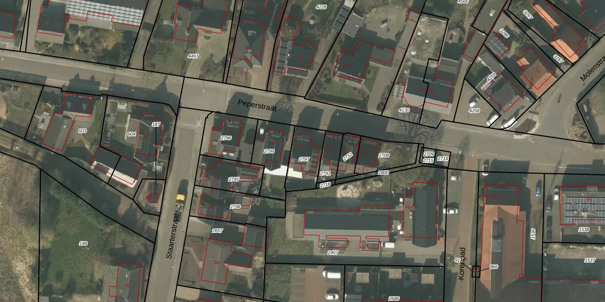 Peperstraat 57 is gelegen op kadastraal perceel SVN01L2797. Deze kadastrale aanduiding is uniek en wordt gebruikt door het Kadaster om eigendomsrechten en andere zakelijke rechten vast te leggen. Het perceel maakt onderdeel uit van de kadastrale gemeente Sevenum.