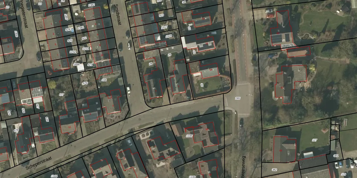 Gebruik de zoekbalk of klik op een perceel voor informatie over de adressen binnen dit perceel.