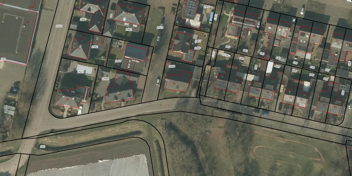 Gebruik de zoekbalk of klik op een perceel voor informatie over de adressen binnen dit perceel.