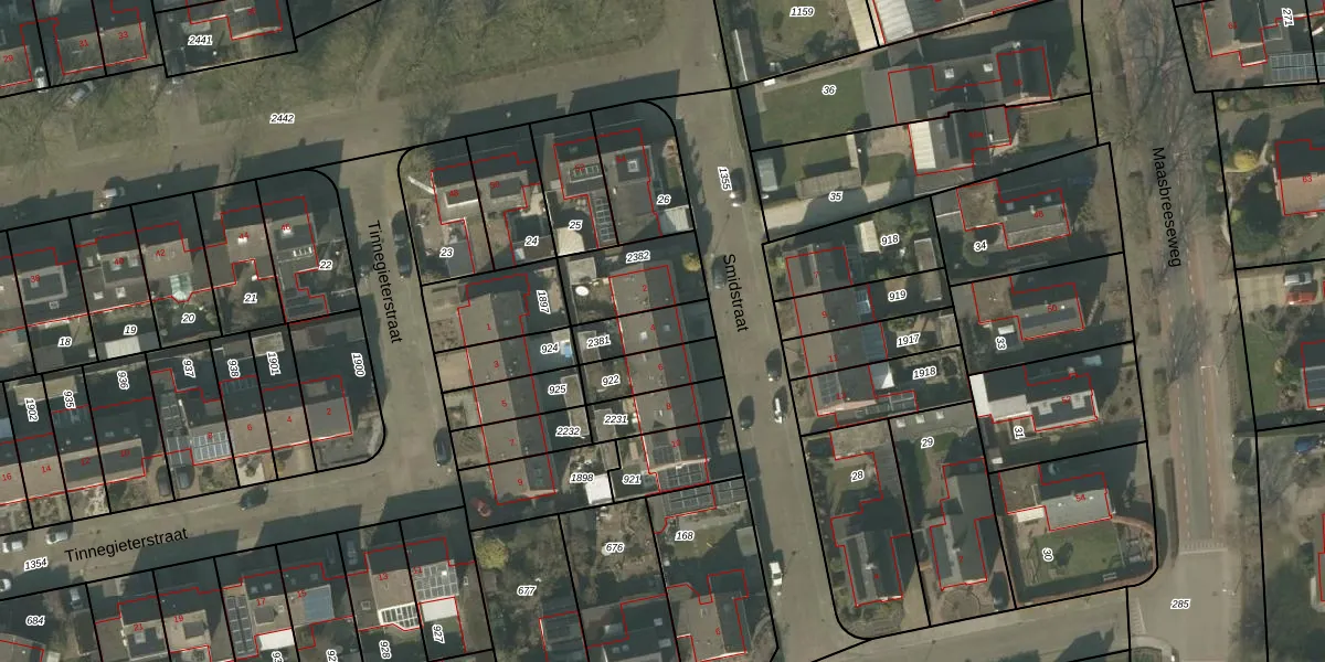 Smidstraat 4 is gelegen op kadastraal perceel SVN01L2381. Deze kadastrale aanduiding is uniek en wordt gebruikt door het Kadaster om eigendomsrechten en andere zakelijke rechten vast te leggen. Het perceel maakt onderdeel uit van de kadastrale gemeente Sevenum.