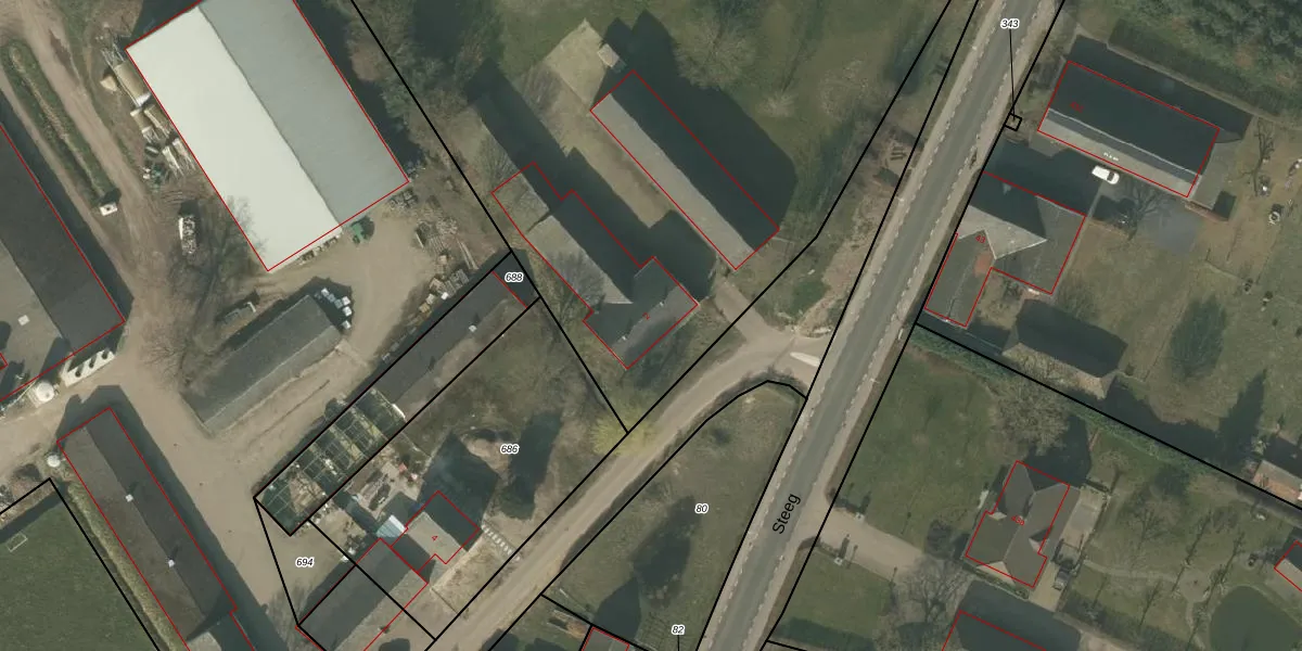Het perceel waarop Steeghoek 2 staat heeft een oppervlakte van 1,0 ha. Dit is een zeer groot perceel. De perceeloppervlakte wordt geregistreerd door het Kadaster. Gedetailleerde informatie over de maten van dit perceel kunt u vinden in het rapport Kadastrale kaart met maatvoering van Steeghoek 2.