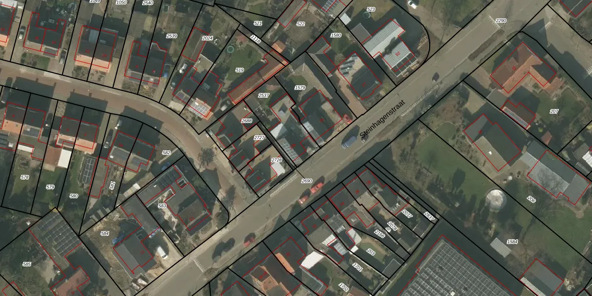 Steinhagenstraat 13-b is gelegen op kadastraal perceel SVN01L2537. Deze kadastrale aanduiding is uniek en wordt gebruikt door het Kadaster om eigendomsrechten en andere zakelijke rechten vast te leggen. Het perceel maakt onderdeel uit van de kadastrale gemeente Sevenum.